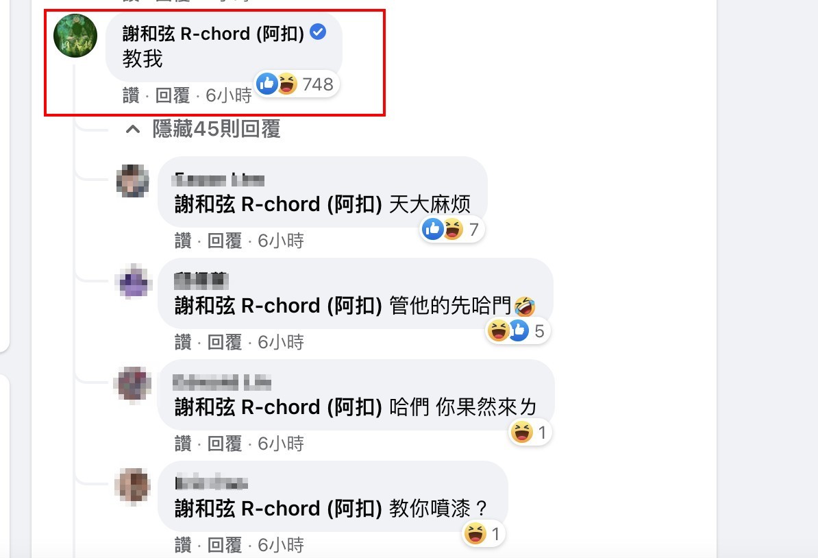 國內知名網紅《流氓藥師》劉信和被花蓮警方認定有藏匿疑似大麻以及擁有模擬槍,他在30日在臉書貼出檢驗報告來自清並未施用任何毒品,不過這一篇貼文不但大歪樓之外,還釣出了藝人謝和弦留下「教我」兩個字。