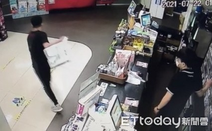 ▲嫌犯趁店員轉移注意之際,迅速取走包裹逃之夭夭。(圖/記者高堂堯翻攝)