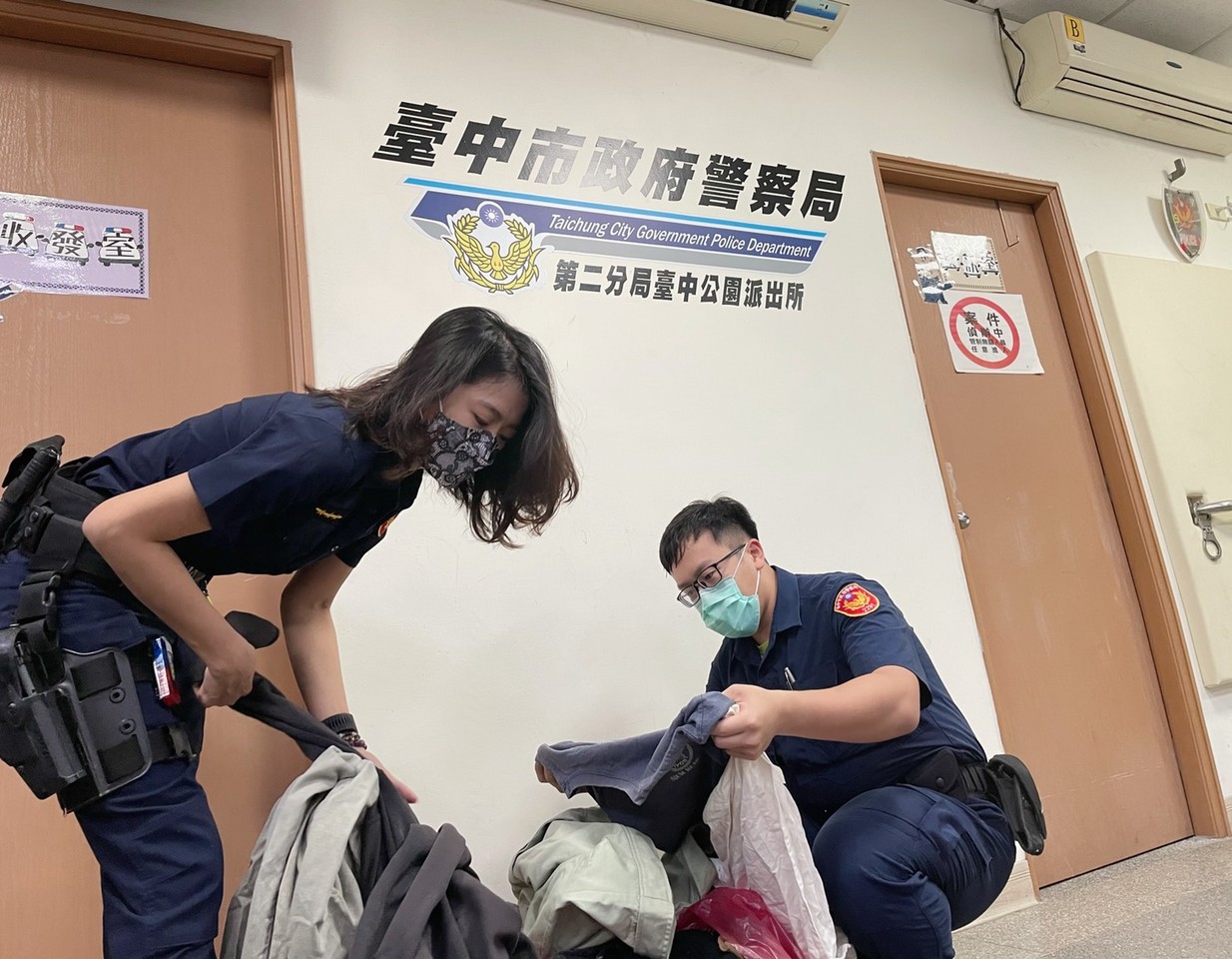 公園所長葉宇晟表示,台中公園經常是移工和街友聚集地,尤其疫情期間,室內有人數限制,因此湧進公園的街友人數增加2成,同事們平時都會把家中用不到的衣服拿來派出所,以備不時之需。