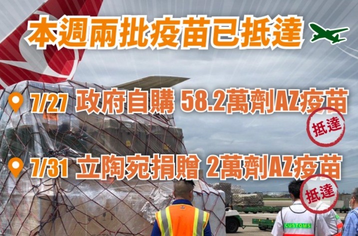 立陶宛捐贈的2萬劑AZ疫苗上午10時34分由土耳其航空貨機運抵桃園國際機場。對此,總統蔡英文透過臉書表示,再次謝謝民主夥伴的心意,加上27日到貨到的58.2萬劑政府自購AZ疫苗,一共增加了60.2萬劑庫存。