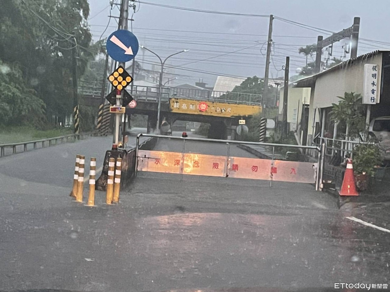 ▲受到西南氣流影響,台南多處地區傳出淹水災情,保安火車站附近涵洞水淹更一度高達一層樓。(圖/記者林悅翻攝)