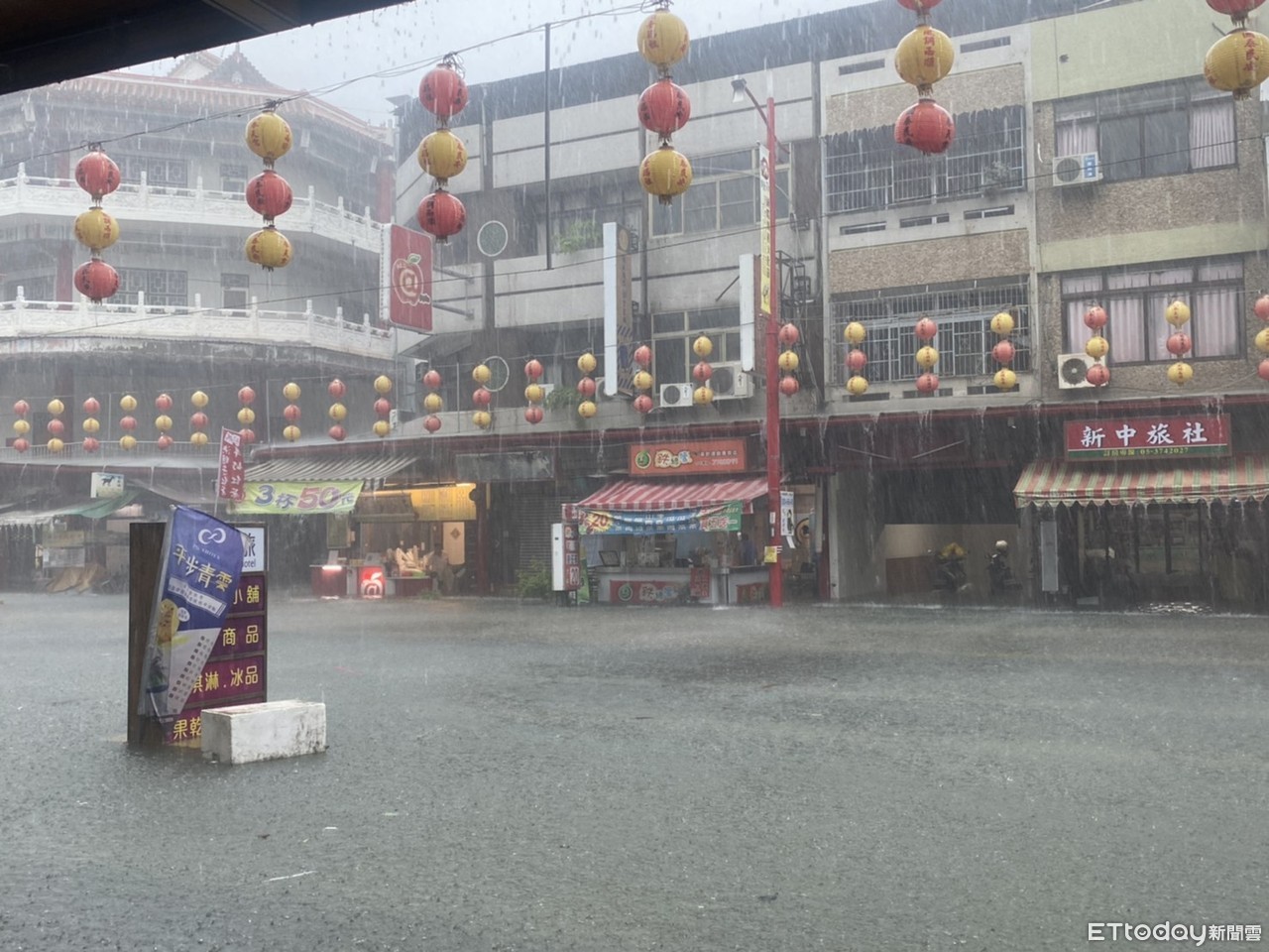 大豪雨狂炸南部,其中嘉義地區災情頻傳,新港奉天宮廟前汪洋一片,甚至已淹到小腿處,而為確保民眾安全,警方已緊急在現場拉起封鎖線,以防意外發生。
