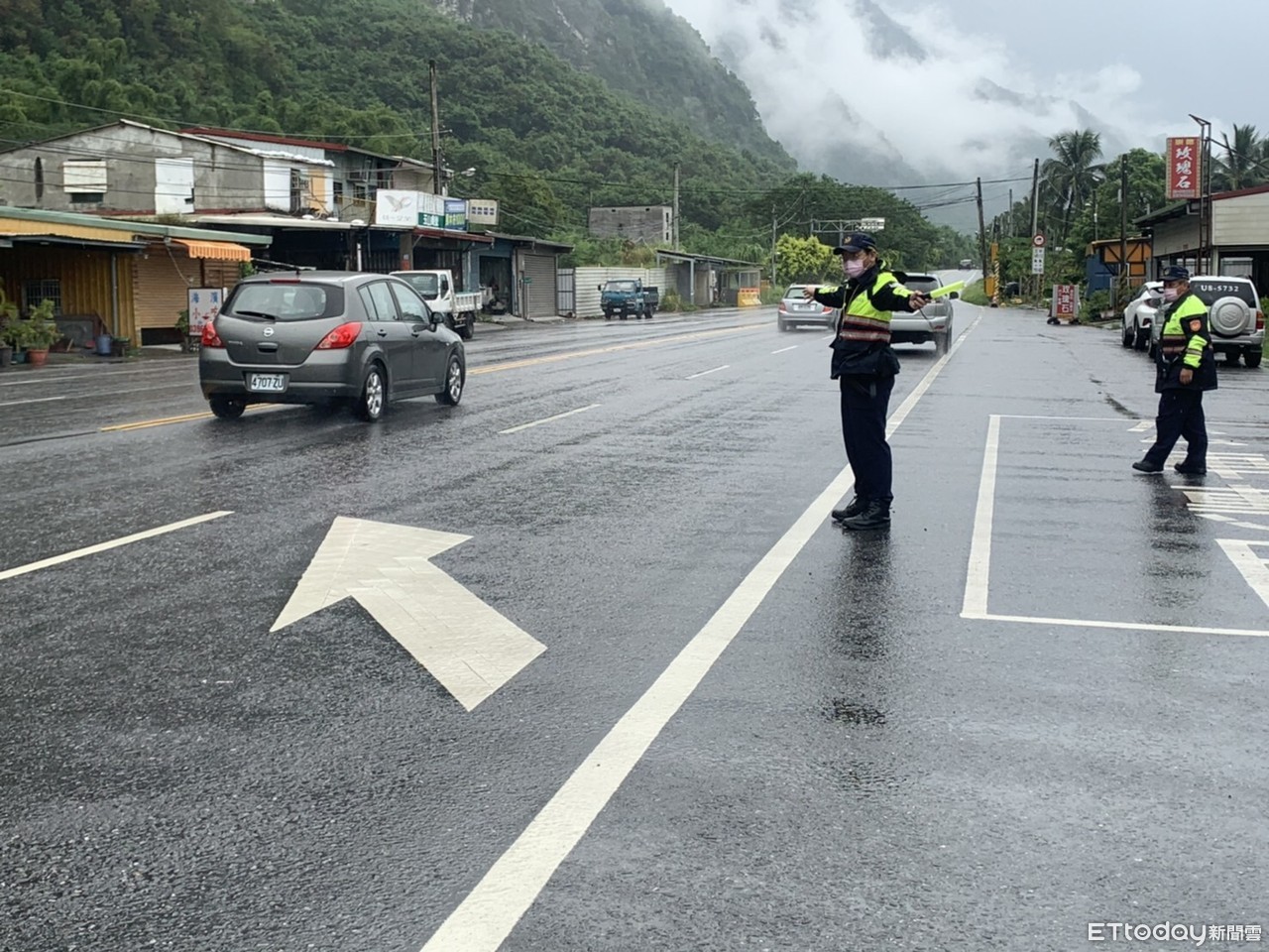 ▲由於連日大雨新城分局提醒遊客,小心慢行並隨時注意路面狀況,慎防路面枯木、落石。