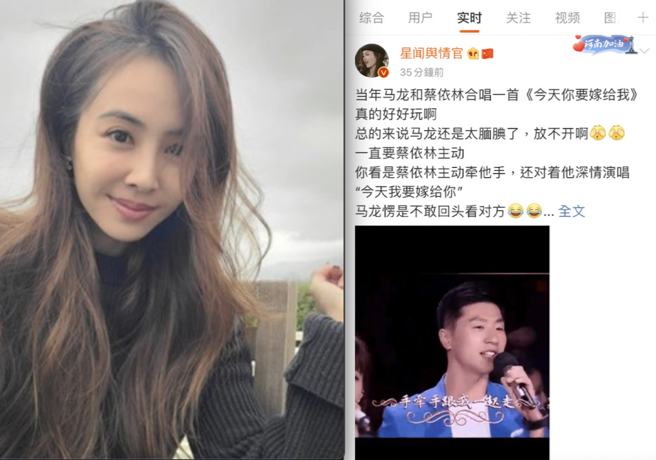 隨後,還有網友PO出,蔡依林曾參加大陸綜藝節目《天天向上》時,和馬龍合唱了一首《今天妳要嫁給我》。此外,不斷有人在評論區翻出蔡依林曾為中國隊加油的證據,比如,她曾在微博給馬龍按讚,按讚中國女排,ins上圖片說「Chinese Taipei」等等。