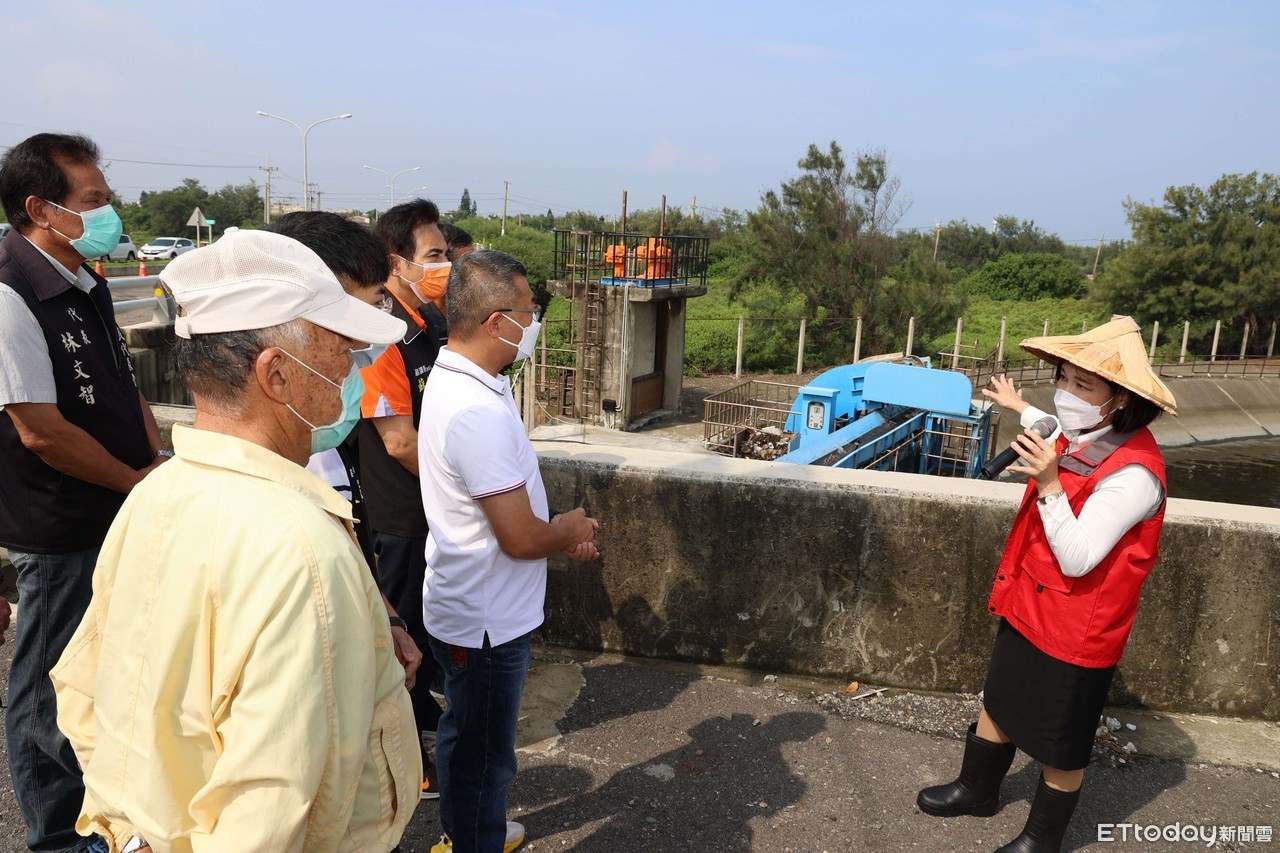 ▲四湖鄉西湖橋抽水站因前池太小,無法將林厝、林東兩村的瞬時雨量抽入舊虎尾溪,造成兩村積淹水嚴重,縣長張麗善實地勘查後表示,縣府將朝擴大前池做規劃設計。(圖/記者蔡佩旻翻攝)