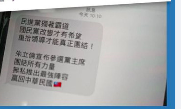 根據卓伯源公布的照片,該黨員收到的簡訊內容為「民進黨獨裁霸道,國民黨改變才有希望,重拾領導才能真正團結!朱立倫宣布參選黨主席,團結所有力量,無私推出最強陣容,贏回中華民國。」