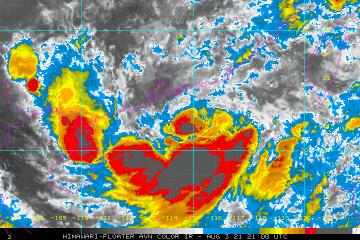 ▲目前台灣附近有兩個熱帶性低氣壓,分別位於廣東海面及琉球南方海面。(圖/翻攝RAMMB)