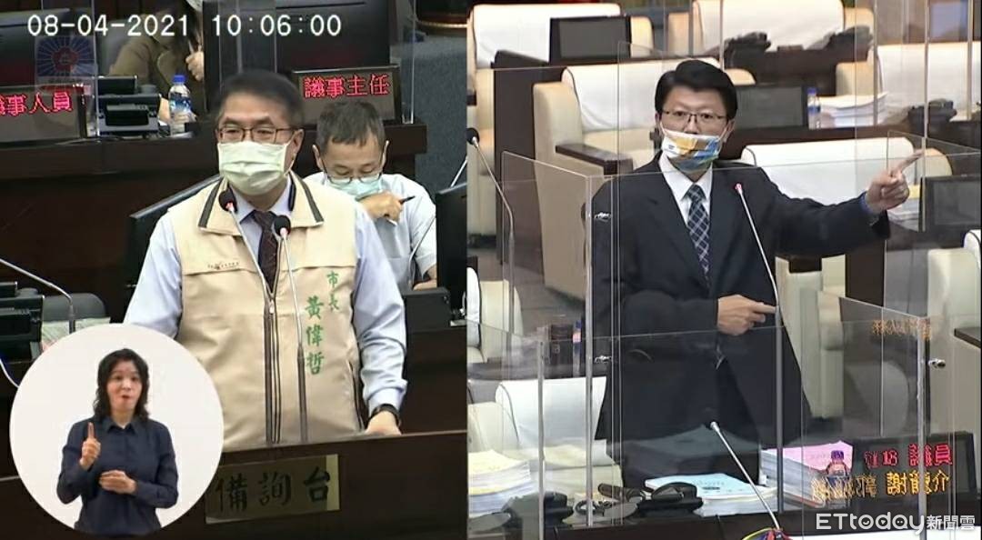 ▲台南市議會國民黨團議員自由發言時,怒轟民進黨政府吹牛疫情超前部署,沒有國際認證疫苗,景氣大好是假象,社會邊緣戶領不到紓困金。(圖/記者林悅翻攝,下同)