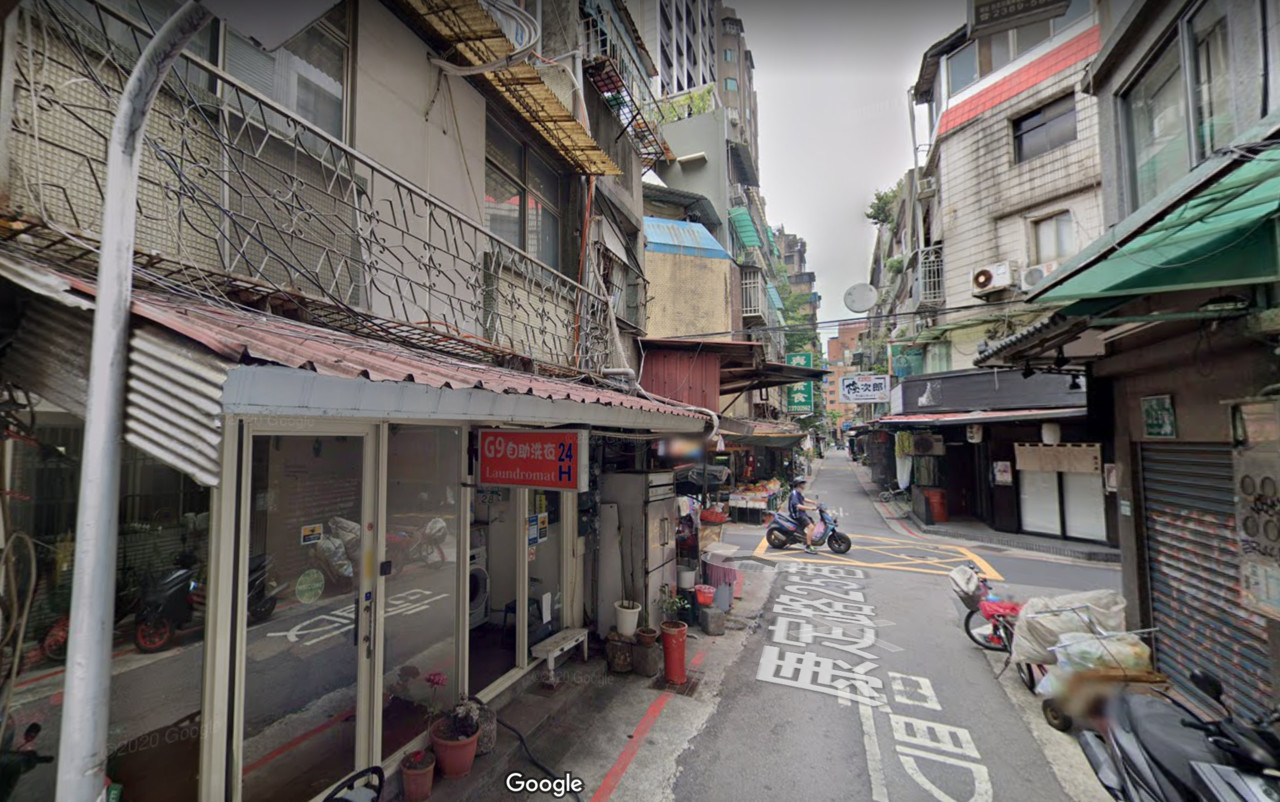 ▲1名女子與男友為錢吵架,竟爬到雨棚與男友對峙,最後遭警方勸下。(圖/畫面翻攝Google Map)