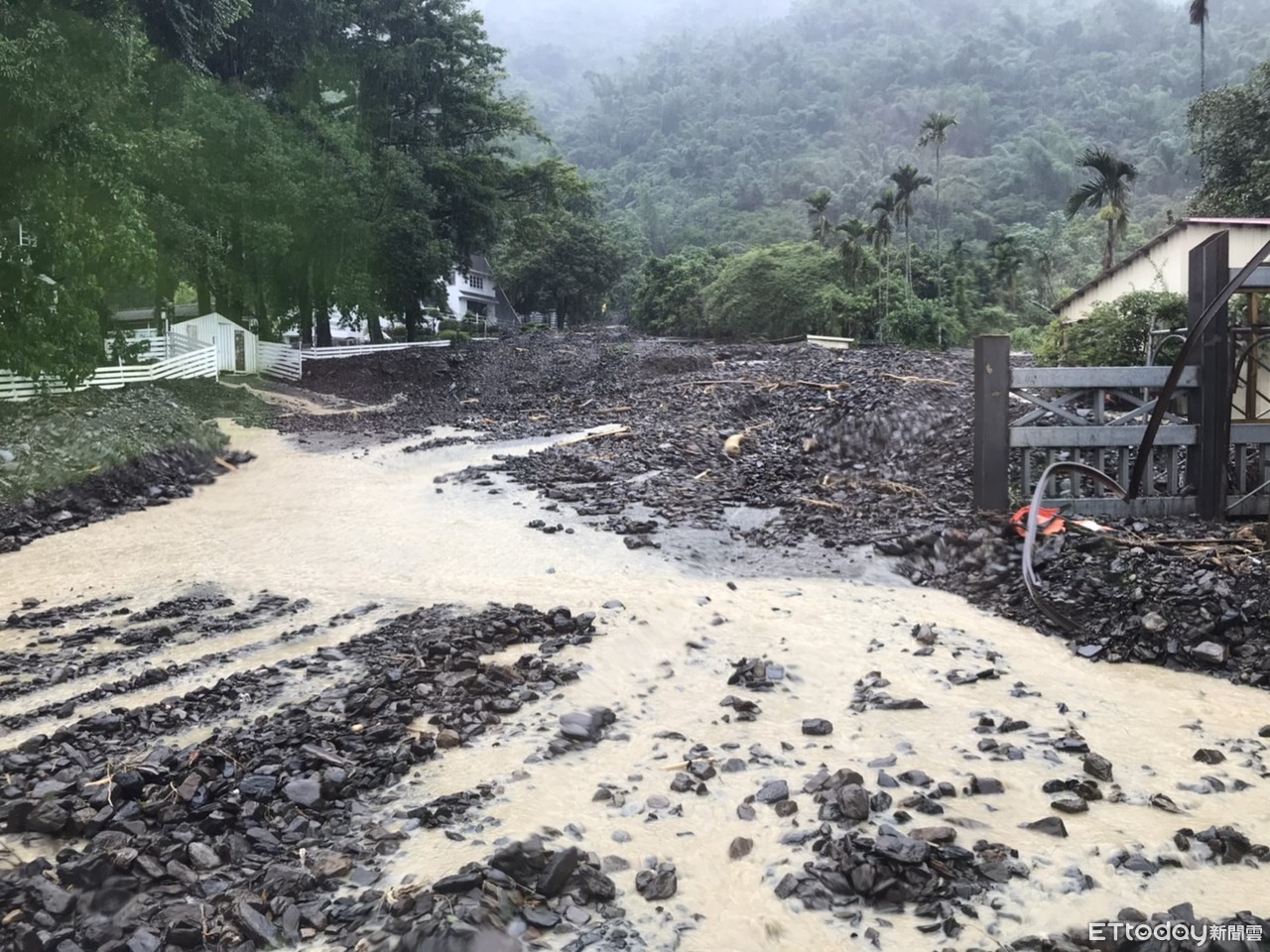 台27線扇平山莊路段土石坍方,豪雨過後即形成泥流阻道,影響車輛通行,經公路總局第三區養護工程處鳳屏工務段搶通後,5日下午1點再因強降雨造成土石坍方。