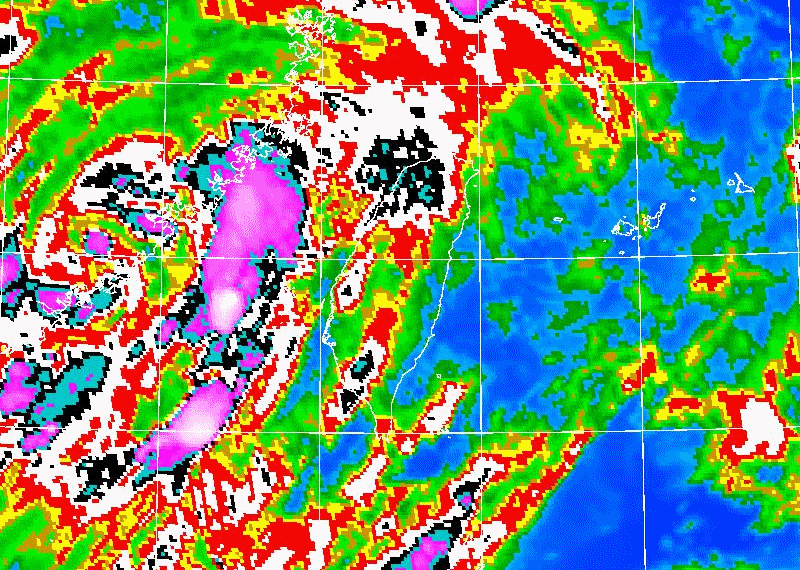 ▼颱風外圍環流加上西南風影響,台海出現「颮線」。(圖/中央氣象局)