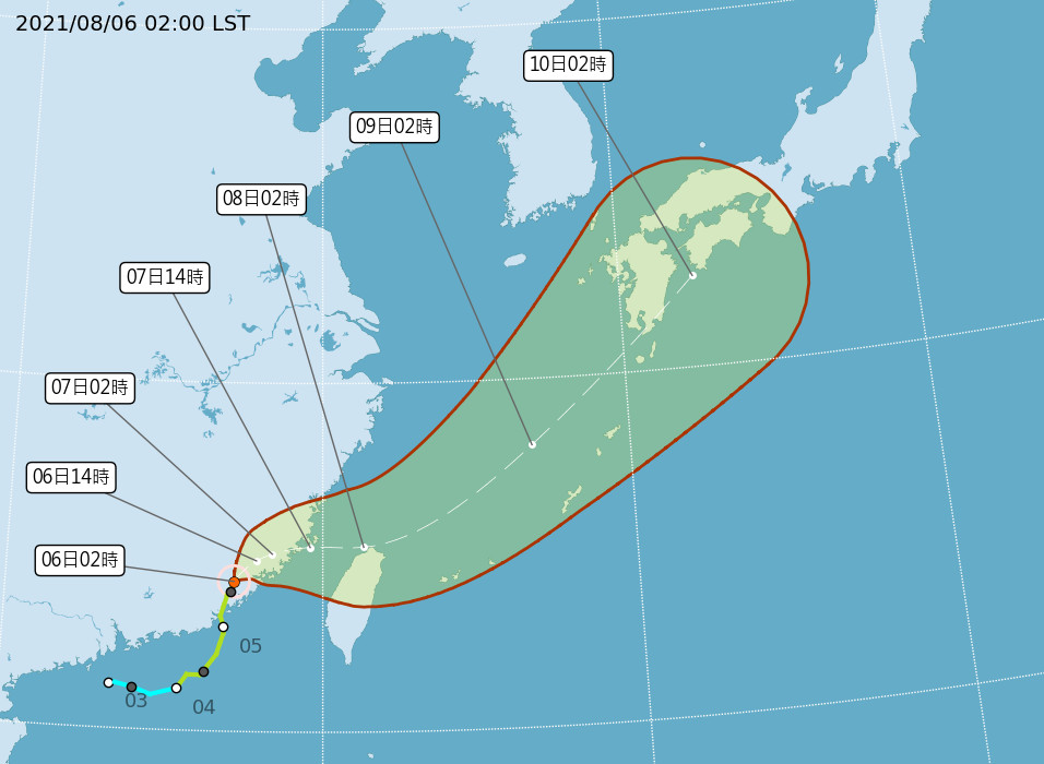 最新歐洲模式模擬顯示,下週二(10日)至週四(12日)「太平洋高壓」逐漸增強、西伸,「西南季風」逐漸減弱,但低層水氣多,大氣仍不穩定,西南部有局部陣雨或雷雨,其他地區午後亦有局部短暫陣雨或雷雨的機率,局部地區仍有「劇烈天氣」(雷擊、強風、瞬間強降雨…)發生的機率,應注意。