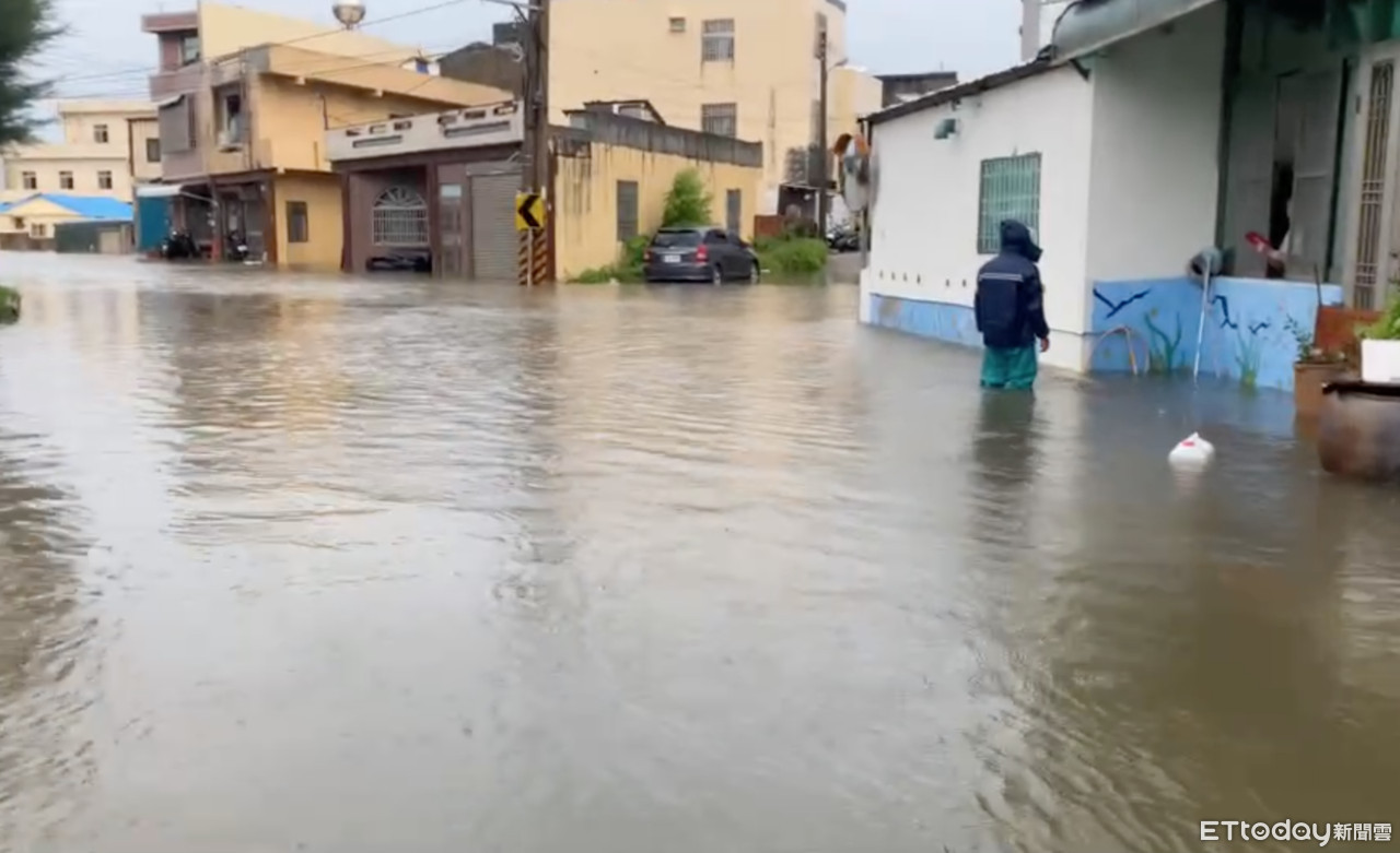 ▲雲林豪雨已造成台西鄉低窪積水淹水,今天中午12:00起停止上班、停止上課。(圖/記者蔡佩旻翻攝)
