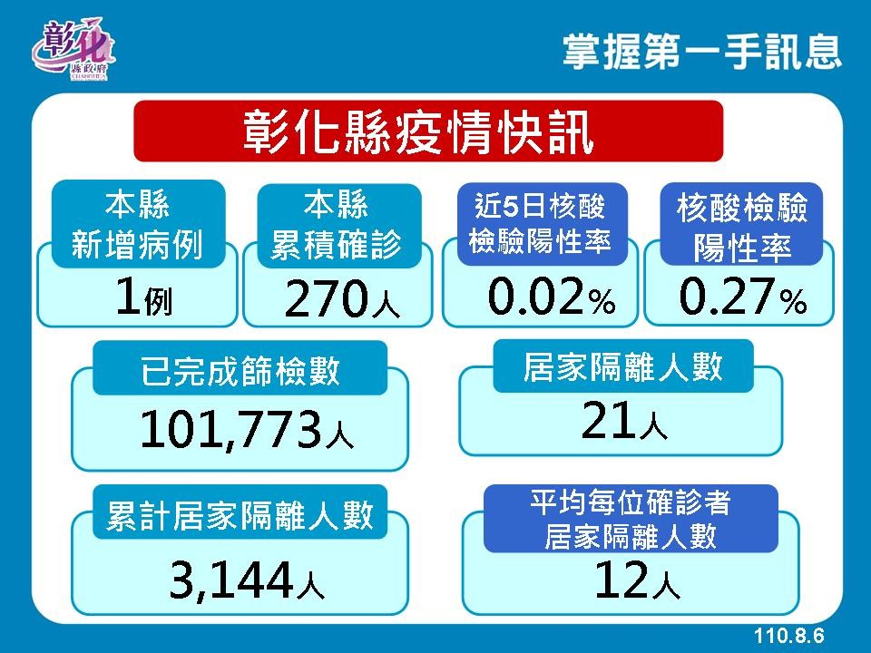 王惠美表示,彰化縣今日新增1例本土案例,該個案為一名外籍移工,而他採檢確診後,衛生局也緊急針對其宿舍、公司全員PCR採檢,結果均為陰性。另外,經疫調後,該個案並無公共足跡。