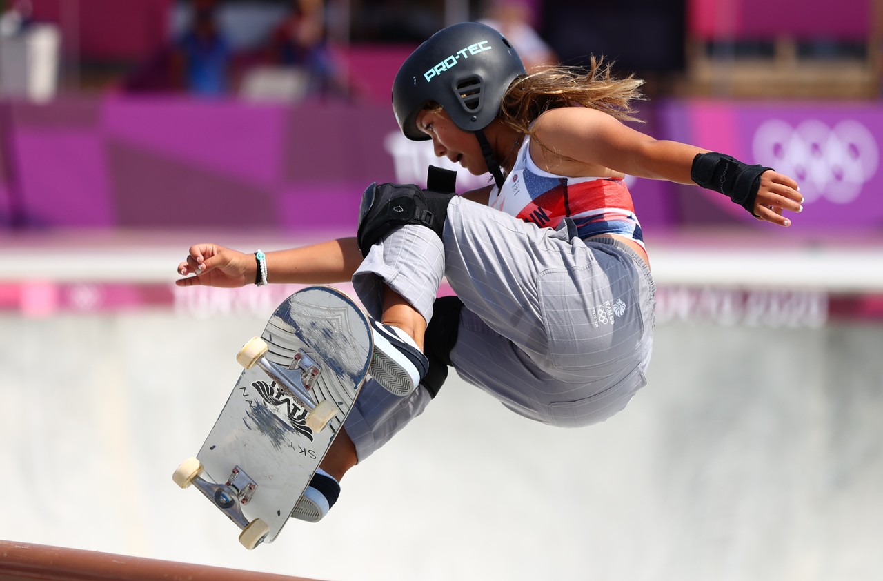 ▲英國13歲「滑板銅牌少女」布朗(Sky Brown),參加東京奧運時,身價已經高達500萬美元。(圖/路透)