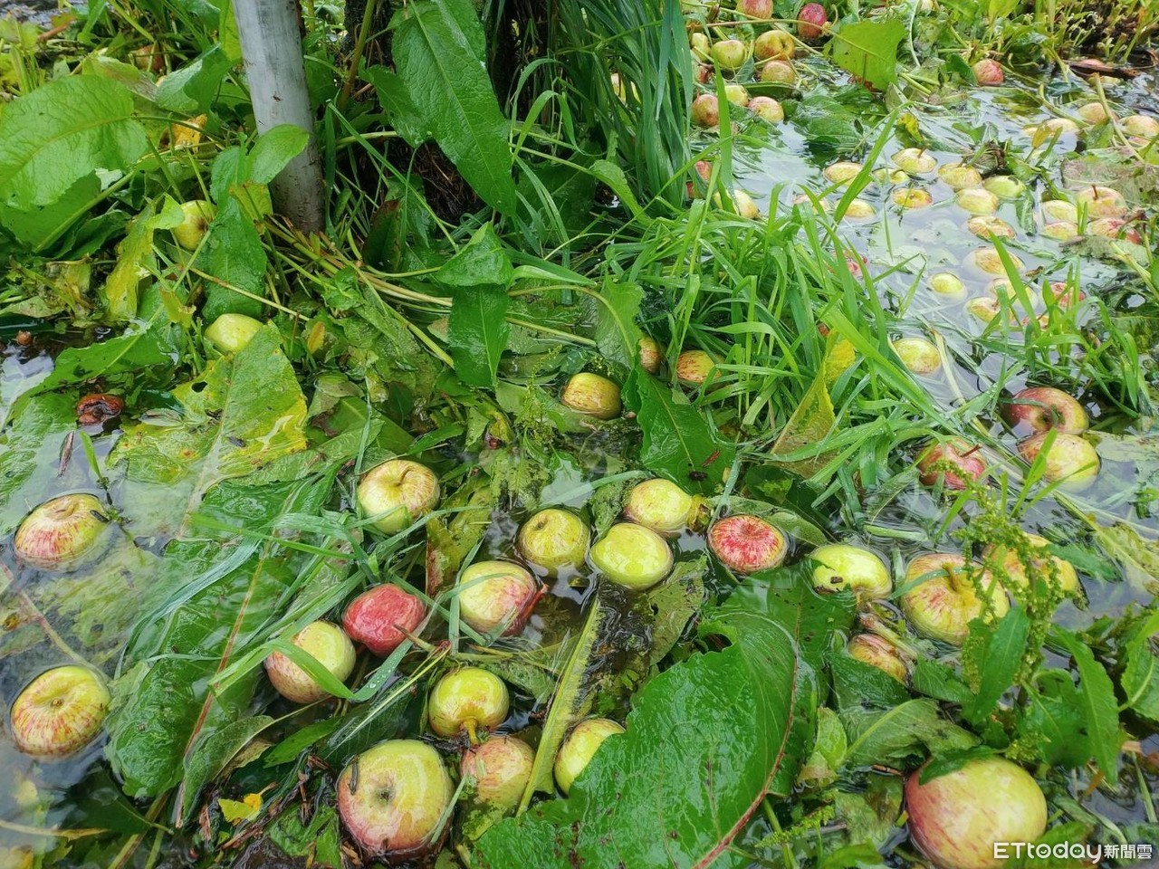 ▲熱帶低壓造成福壽山農場蘋果園落果嚴重。(圖/民眾提供,下同)