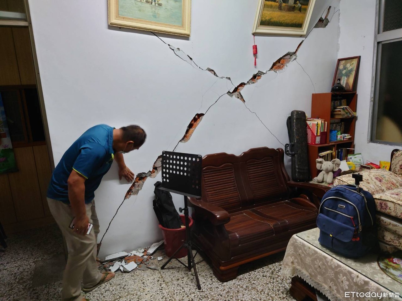▲花蓮富里一夜連9震,牆面變形。(圖/記者柯政誟翻攝,下同)