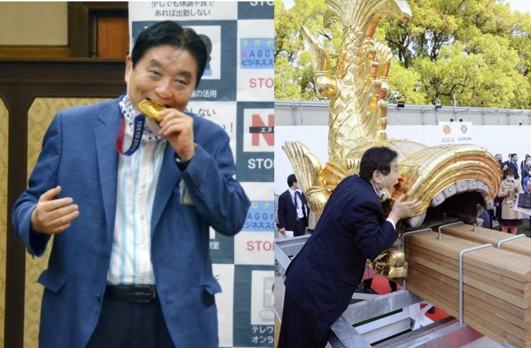 根據《產經新聞》報導,河村隆之的白目行徑引發的風波持續延燒,就連網友都紛紛替後藤希友抱不平,甚至向東奧組委會喊話「幫她換一面金牌」。然而事實上,河村隆之早非第一次做出這樣的無腦行為,他4月9日出席名古屋城天守的開幕活動時,就曾經拉下口罩,張嘴對著神獸「金鯱」咬下去。然而由於「金鯱」尺寸太大,因此畫面看起來就像他在猛親「金鯱」一樣。