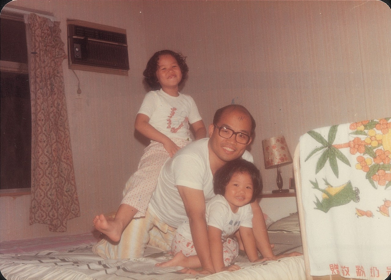 ▲蘇貞昌年輕時帶3個女兒出門騎腳踏車。(圖/翻攝自蘇巧慧臉書)