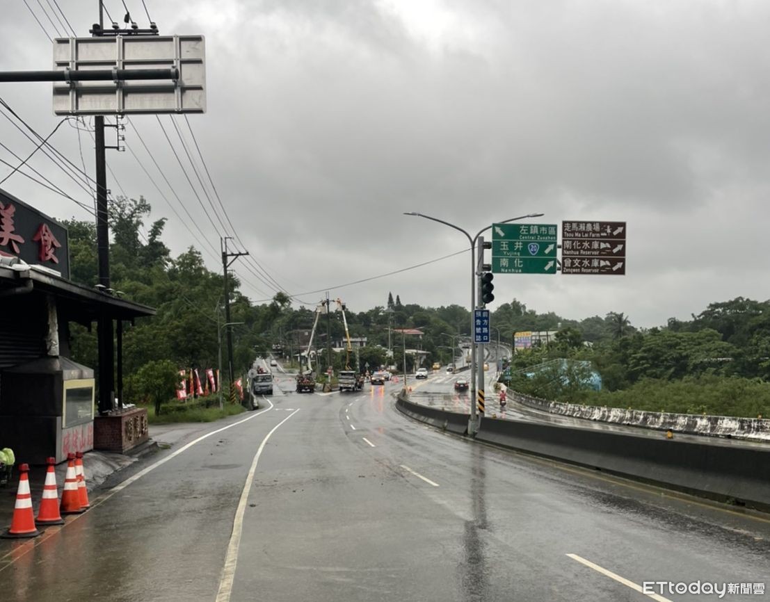 ▲台20線左鎮路段山坡土石及樹木滑落致交通中斷,經公路總局搶修清理,目前恢復雙向通車。(圖/記者林悅翻攝,下同)