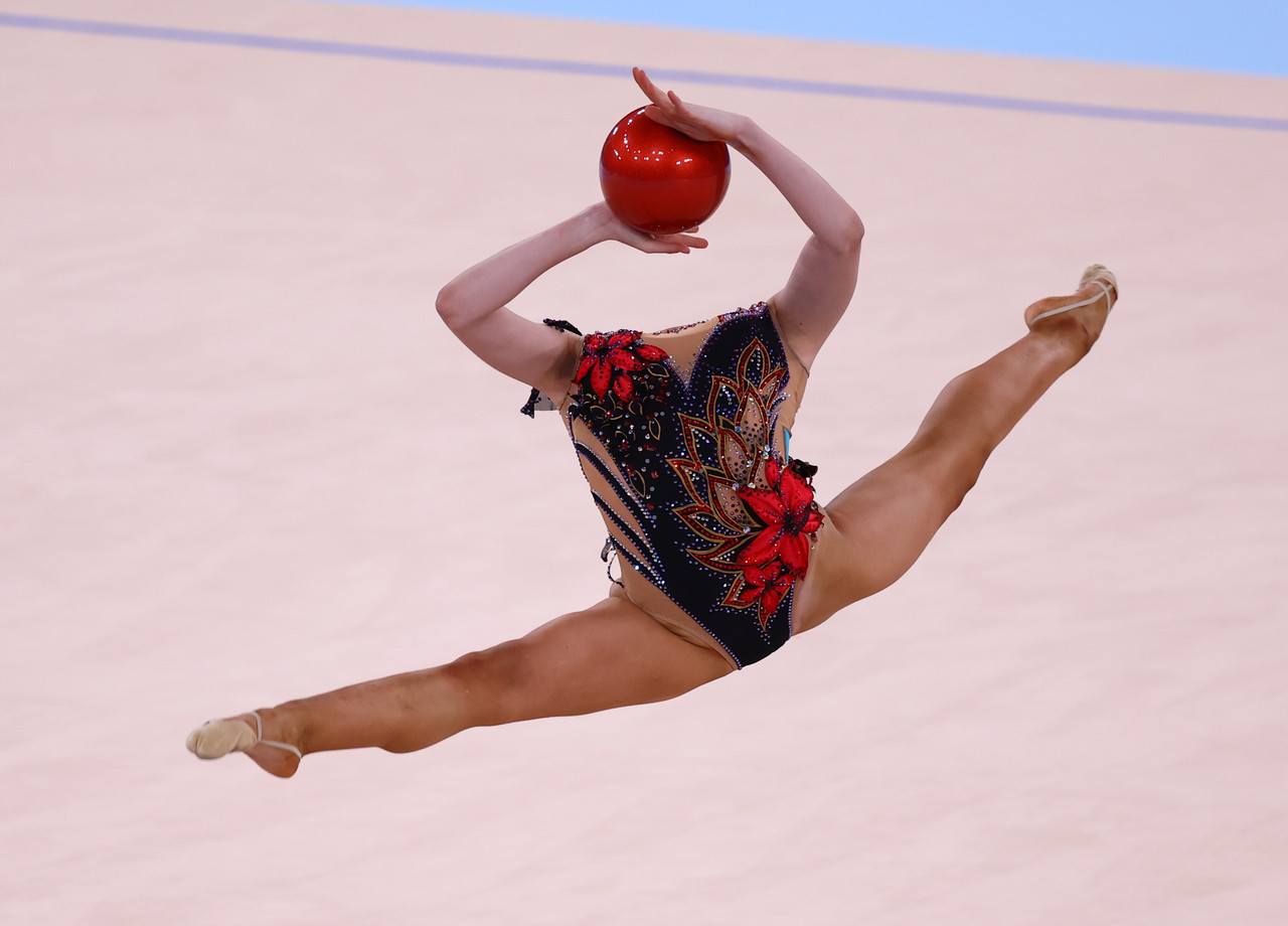 東京奧運韻律體操女子個人全能比賽落幕,其中一張照片「奇蹟照片」近日在日本推特網友之間瘋傳,只見女選手在球操項目做出跳躍動作,一瞬間她的頭部彷彿消失一般,令人稱奇。
