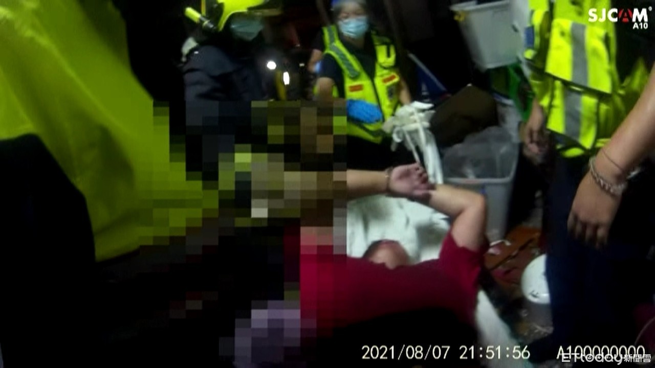 另外,蔡等人趁消防隊破門,吸引黃男注意,也偷偷從3樓頂樓進去屋內。結果體重破百公斤的黃男發現警察後,立刻強力反抗,員警拿出辣椒水噴灑,同時用臂盾上前成功壓制。過程中副所長右手臂遭咬傷,眼睛擦傷,另一名警員林建豪則是雙手及腿擦傷,所幸都沒有大礙。