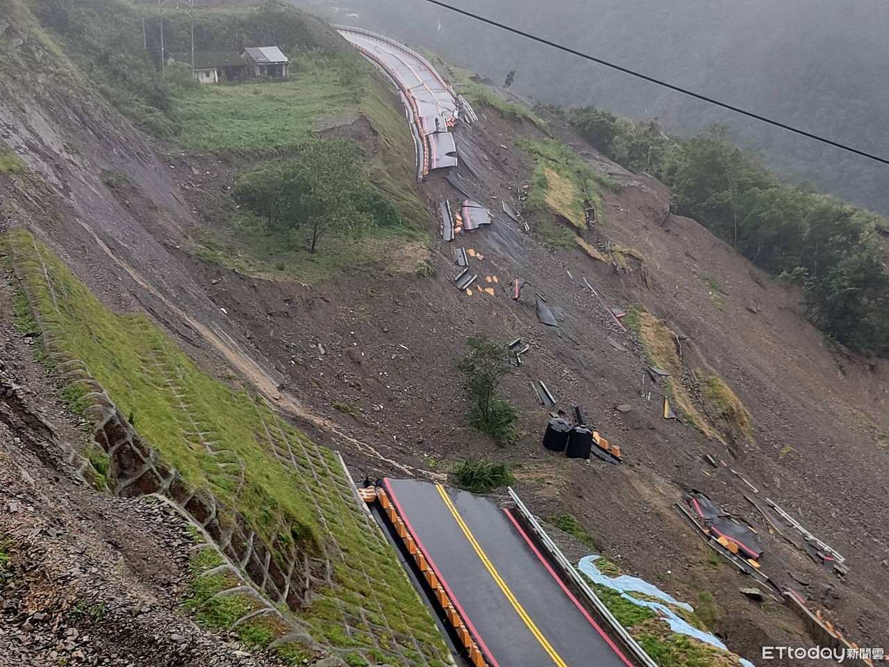 ▲藤枝聯外道路18K處完全崩塌,目前車輛管制禁止通行。(圖/記者許宥孺翻攝)