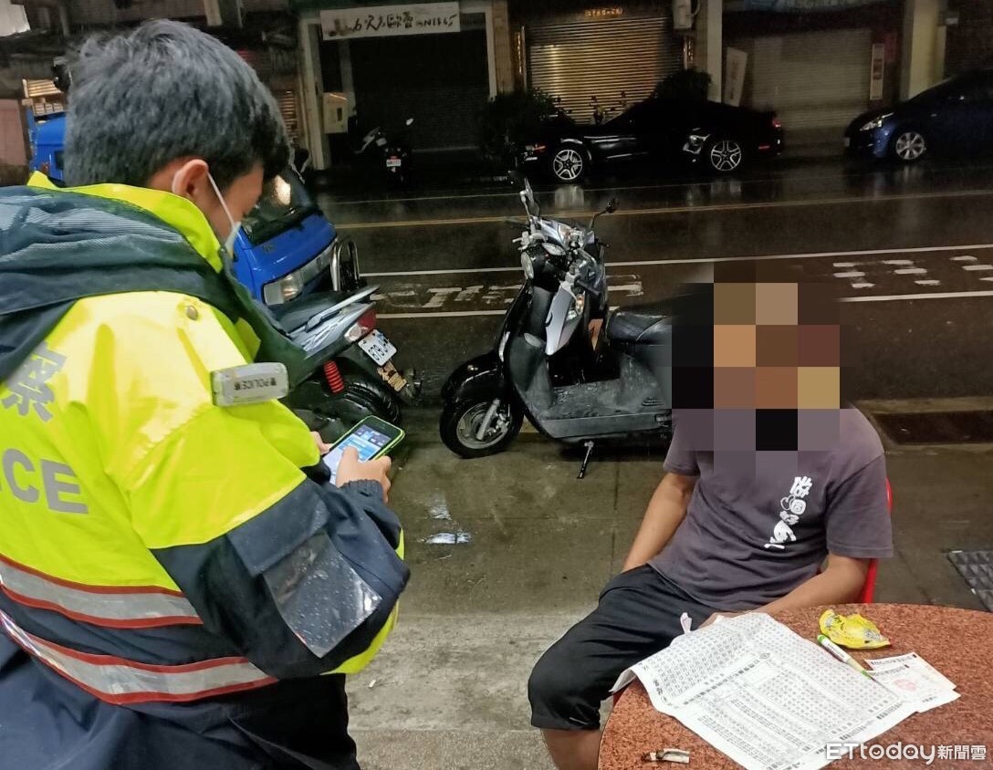 員警抵達現場後,果然看到一名男子躺在地上淋雨,趕緊叫醒他直說「先生,你沒事吧?」洪男這才睜開眼睛,一看發現是警察,趕緊起身,在員警攙扶下坐到店門口的椅子上。