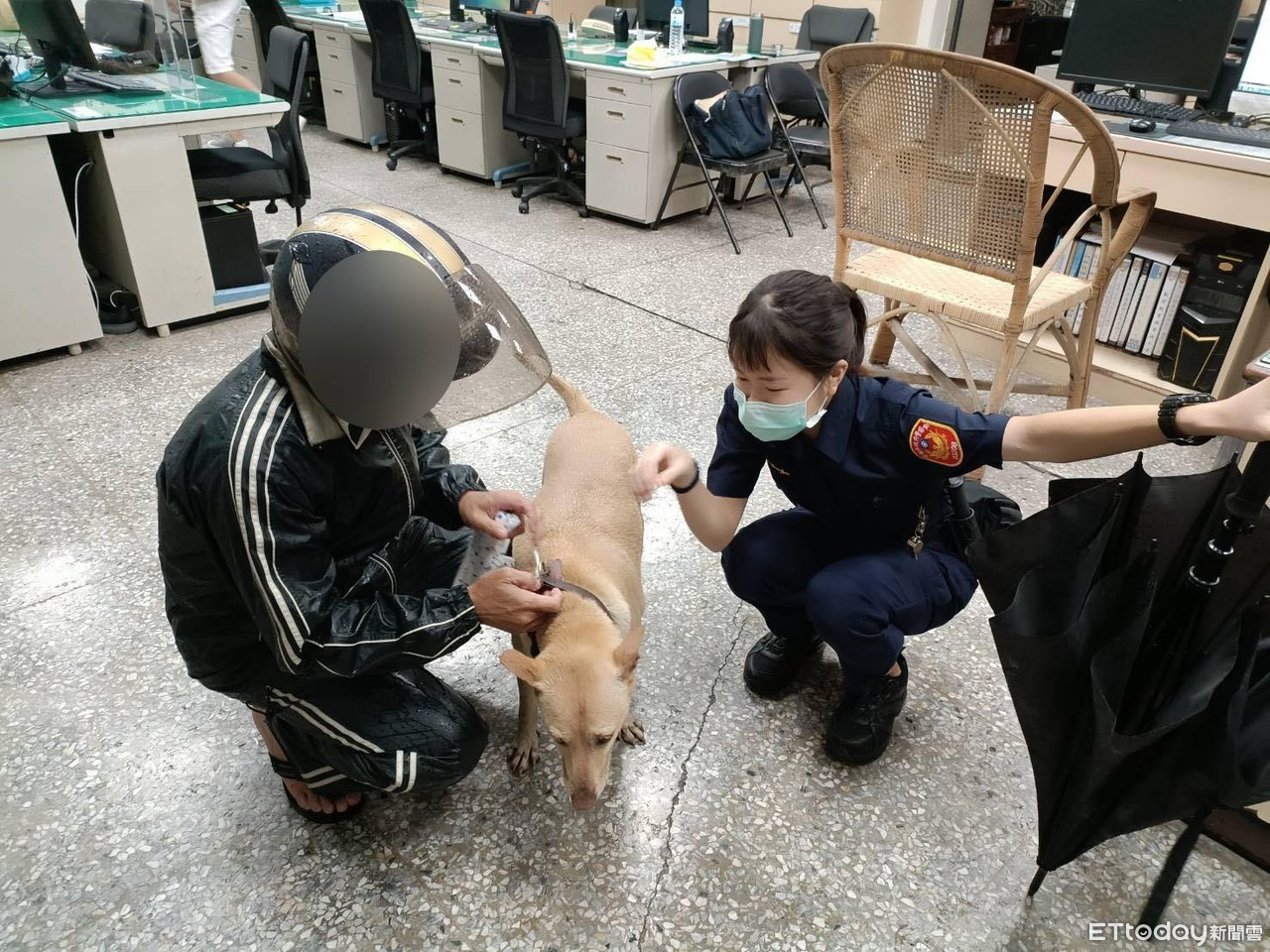 ▲高師大校犬小米下大雨到左營迷路,狗爸爸(左)趕到派出所領回 。(圖/記者吳奕靖翻攝)