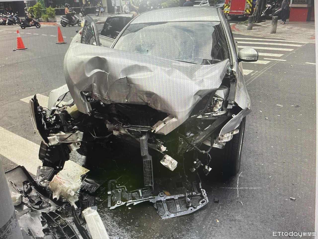▲9日清晨林森北路錦州街口發生一起疑似黃牌重機闖紅燈撞擊直行自小客車,雙方駕駛均送醫治療。(圖/記者張君豪翻攝)