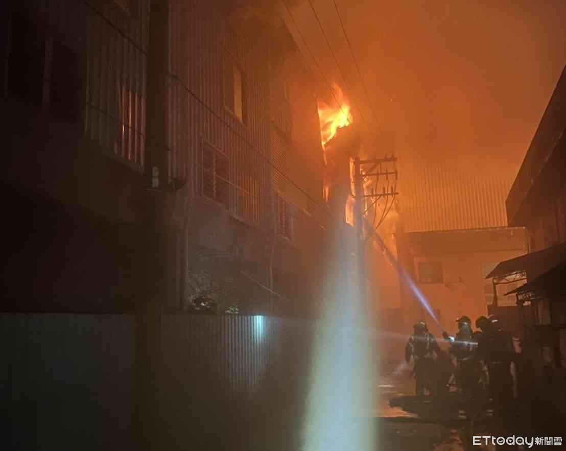 ▲台南市永康區中山南路471巷1家汽車零件組裝工廠發生火警,消防人員全力搶救中。(圖/記者林悅翻攝,下同)