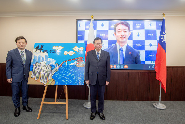 這麼重要的日子,互道友誼,豈能受疫情影響!桃園於2016年8月9日與千葉縣締結友好城市,今年為第5年,市長鄭文燦9日與日本千葉縣知事熊谷俊人進行視訊會談,雙方互贈締結紀念品表達彼此厚重情誼。其中鄭市長特別致贈積木畫,畫中展現「大溪橋」與「中之島大橋」相連的友誼之橋,象徵兩座城市跨海相連。