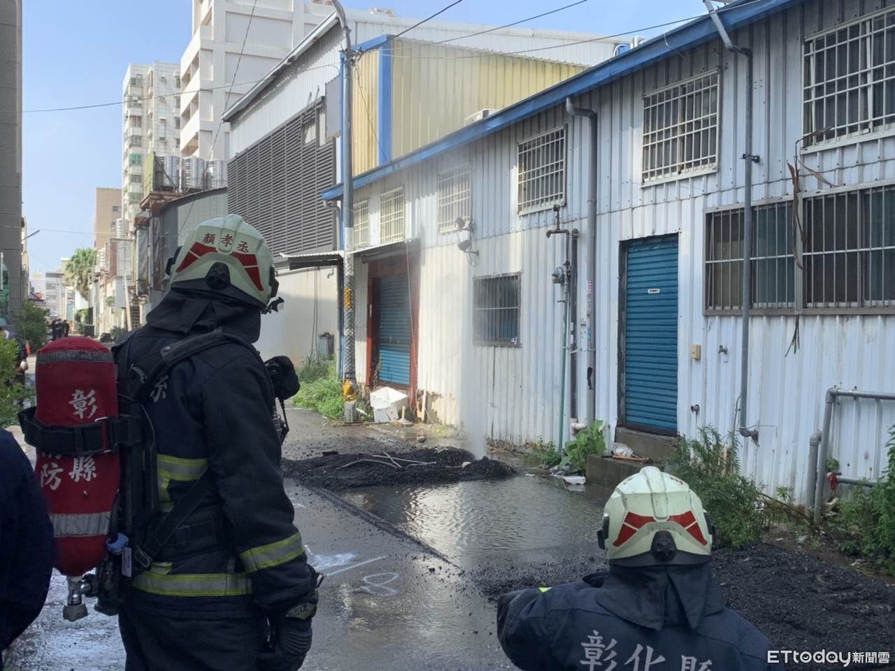 ▲彰化市瓦斯管線洩氣消防局佈水線。(圖/記者唐詠絮翻攝)
