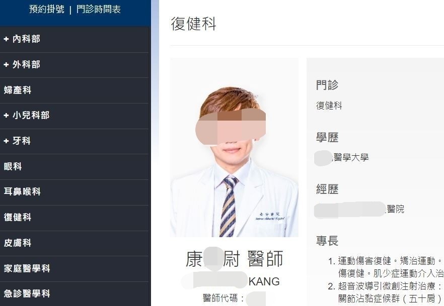 ▲康醫師主攻復健科。(圖/翻攝自醫院官網)