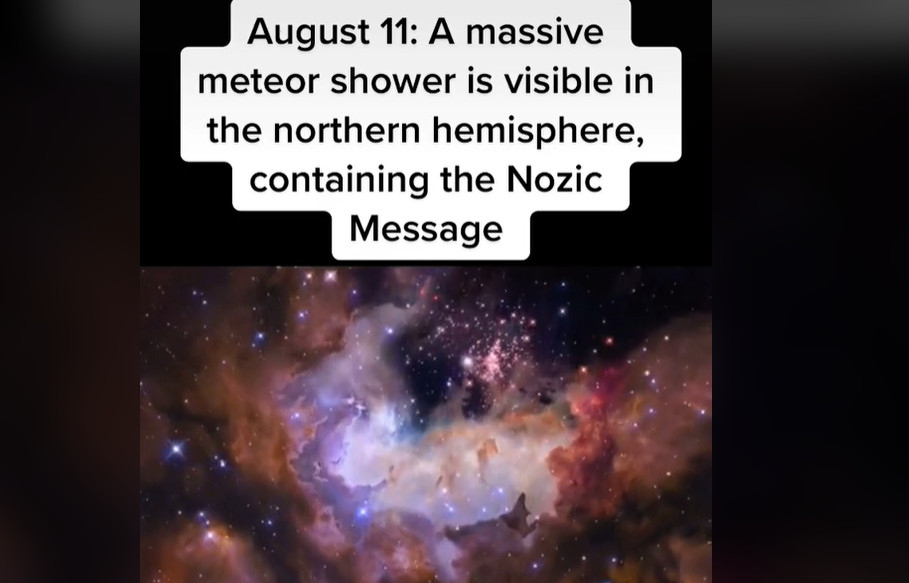 據《太陽報》報導,一名自稱來自2714年的時空旅人最近指出,北半球將在8月11日出現持續1至2週的英仙座流星雨,而在眾多流星之中,有一顆會顯得與眾不同,因為這是一艘太空船,它載著外星人趁亂來到地球,為接下來的星際大戰「諾齊克」(Nozic War)做準備。