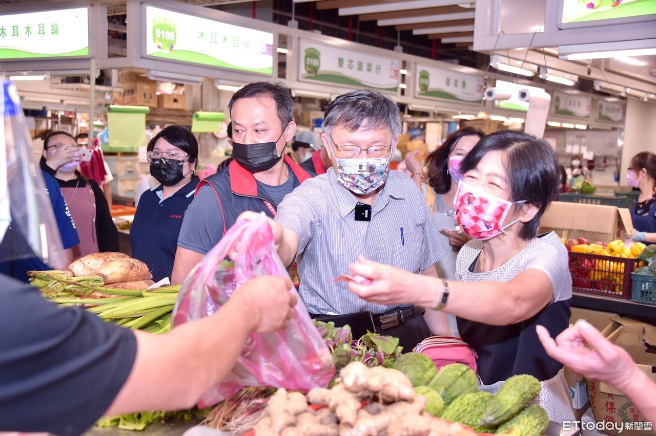 ▲柯文哲日前與夫人陳佩琪一起到環南市場買菜。(圖/北市府提供)