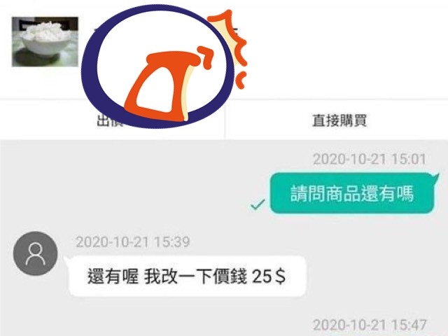 不過,原Po貼文的附圖卻讓網友們紛紛歪樓,原來該圖為一名蝦皮賣家所販售的商品,是一碗要價50元「我親自煮的白飯」,但當買家詢問對方「還有嗎?」賣家卻表示「還有喔,我改一下價錢25$」,讓買家不禁納悶「為什麼?」原來是因為,買家太餓所以已經先吃掉半碗了。