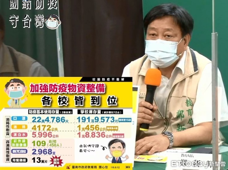 ▲台南市教育局長鄭新輝表示,開學在即,學生暑假後將重新回到校園,台南市超前部署各項開學準備工作,各項防疫物資準備到位,成為校園防疫最佳後盾。(圖/記者林悅翻攝,下同)