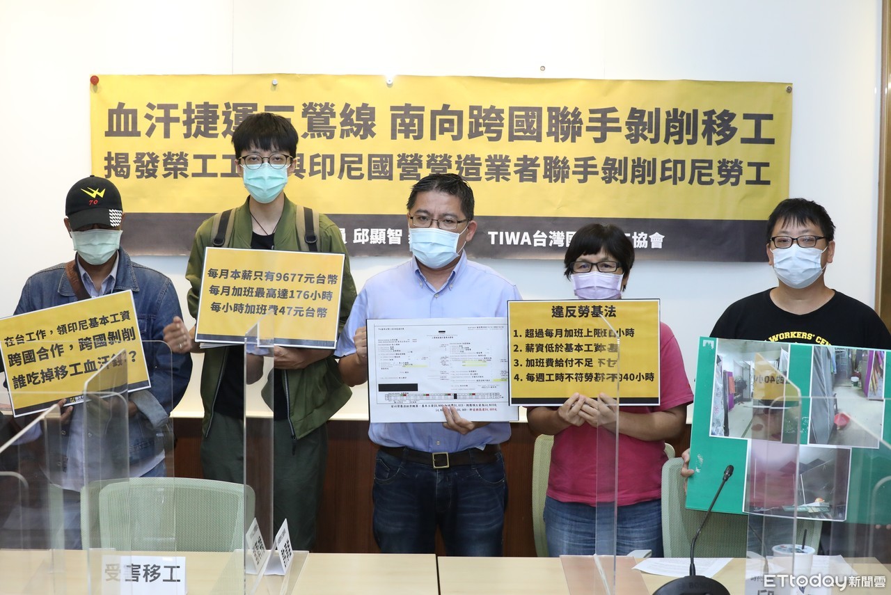 邱顯智與台灣國際勞工協會(TIWA)今天上午舉行「血汗捷運三鶯線,南向跨國聯手剝削移工:揭發榮工工程與印尼國營營造業者聯手剝削印尼勞工」記者會,踢爆從事捷運三鶯線工程的移工每月薪資竟然不到1萬元,且每月加班時數高達176小時,「榮工工程建造三鶯線捷運,黑幕重重,誰吃掉移工的血汗錢?」