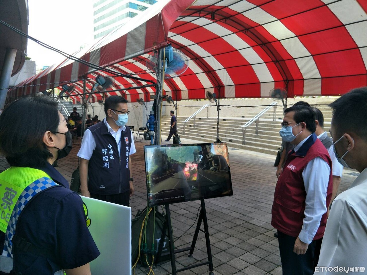 ▲並引進「移動式多媒體平面影像宣導設備」,播放交通安全宣導影片。(圖/桃園警分局提供)