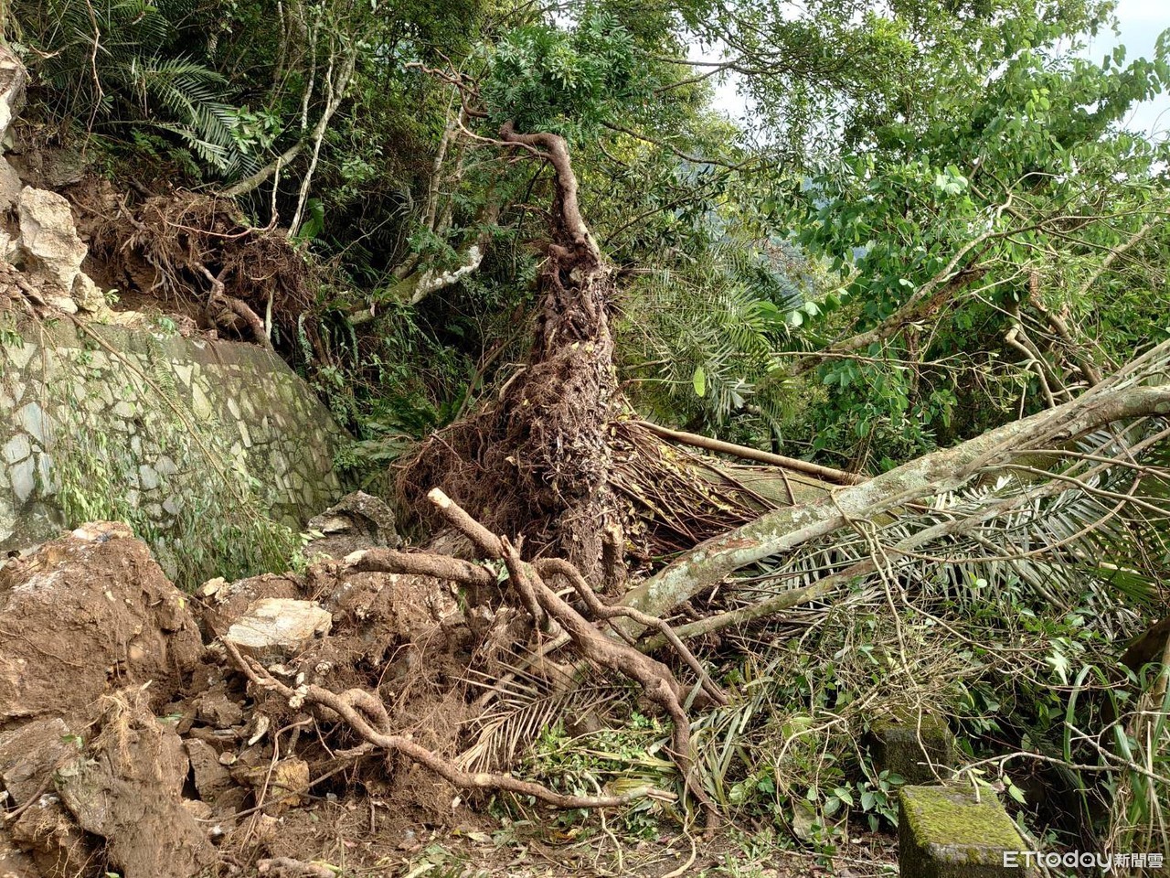 ▲花蓮佐倉步道因受連日大雨,導致樹木倒塌及邊坡土石滑落,目前全線封閉,預計18日搶修完成。(圖/花蓮林管處提供,下同)