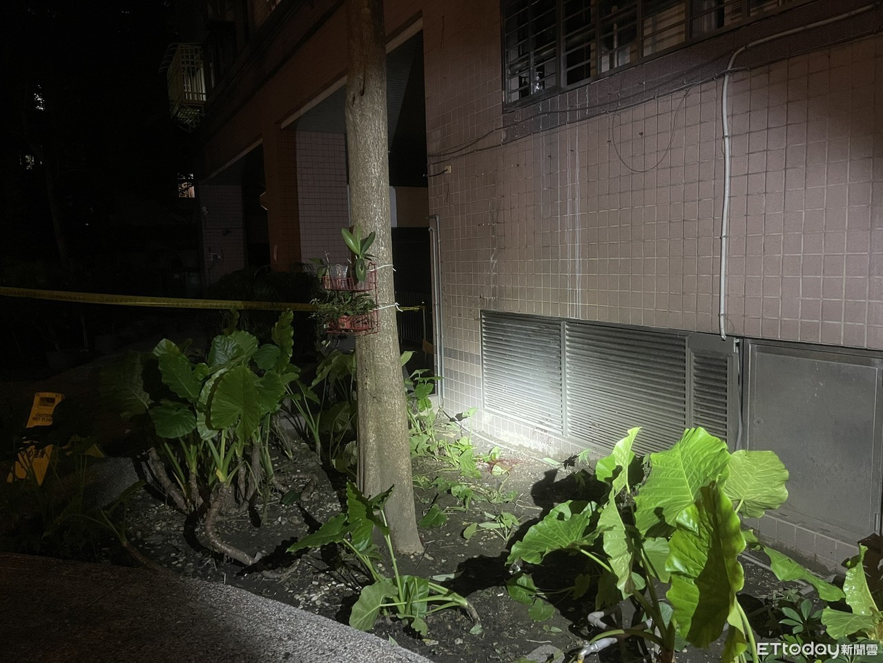 ▲24歲女子從9樓墜落到中庭花圃奇蹟生還 。(圖/記者陳以昇翻攝,下同)