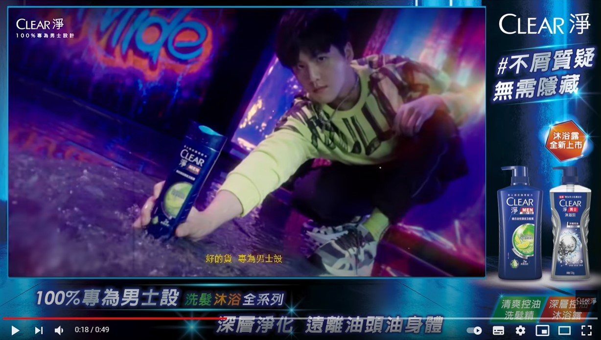 許凱皓在舞蹈界暱稱「Lockingjack」,在影片裡也展現充滿力與美的動作,在街頭塗鴉的元素牆前盡情舞動,有力踩踏著水花盡展男性自信。舞曲融合100%為男性打造的CLEAR 淨洗沐產品特色,簡單就能讓油脂髒污沒了蹤影,帥氣對鏡頭放電高喊「男士控油配方,打造無屑可擊的你」。
