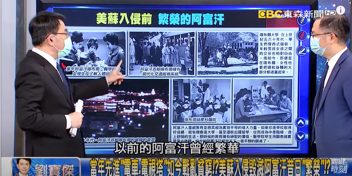 主持人劉寶傑引言指出,現在阿富汗給人的印象是「帝國墳場」、「窮山惡水」,在塔利班政權統治後,女人全身要包裹非常嚴密,但是以前的阿富汗曾經繁華,直到蘇聯入侵後,全都毀掉了!