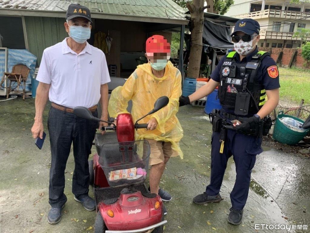 警方獲報立即前往瞭解,看到這位阿北身上僅穿著輕便型雨衣,深怕老人家淋雨後著涼,因此先將其攙扶上巡邏車稍作休息、詢問他相關資料,不料阿北卻無法應答,後來警方在他身上發現身分證件,得知他是設籍在高雄市林園區的78歲黃男,且已被通報為失蹤人口,警方先將黃民載返派出所休憩,並通知其妻子至所接回丈夫。