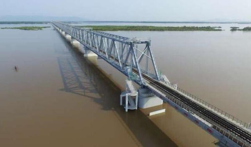 中俄黑龍江鐵路大橋昨(17)日鋪軌貫通,成為中俄兩國首座跨江鐵路大橋。該座鐵路大橋位於黑龍江省同江市與俄羅斯下列寧斯闊耶市間,全長約7.2公里,大陸境內主橋長1.88公里,俄羅斯境內主橋長329公尺,設計通行時速為100公里,年過貨能力約2100萬噸。
