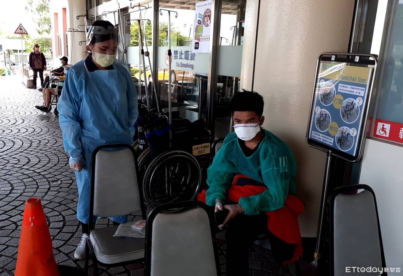 ▲移民署南區事務大隊台南市專勤隊派專人陪同,以救護車送移工前往醫篩檢,並等待採檢結果,幸好係陰性,虛驚一場。(圖/記者林悅翻攝,下同)