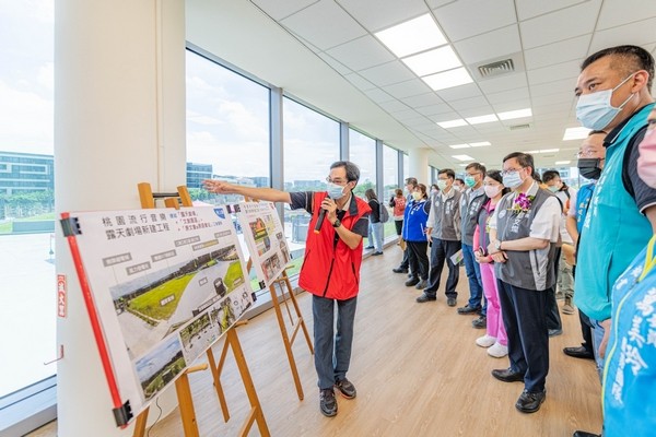 鄭市長表示,市府規劃打造流行音樂戶外表演場地及原住民族文創園區複合式文化地標,占地面積約4.3公頃、總經費約27億元,工程將分三期。第一期「桃園流行音樂露天劇場新建工程」於2019年12月開工、經費約6.32億元,由文化部補助約2.39億元、市府自籌3.93億元。總樓地板面積約1萬6,350平方公尺,設置地上2層、地下1層建築,可同時容納1萬5,000名觀眾入場,地下停車空間則可停放汽車260輛、機車576輛。