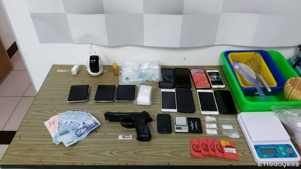 ▲台南市新化與善化分局合作分享情資,聯手破毒集團,主嫌蔡嫌等8人,起獲大量新興毒品及現金等販毒贓證物,全案依毒品罪嫌送辦。(圖/記者林悅翻攝,下同)