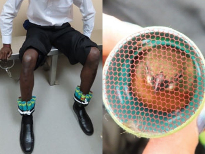 ▲圭亞那籍男子將活鳥塞進髮捲內走私。(圖/翻攝自推特/@MikeBalsamo1)